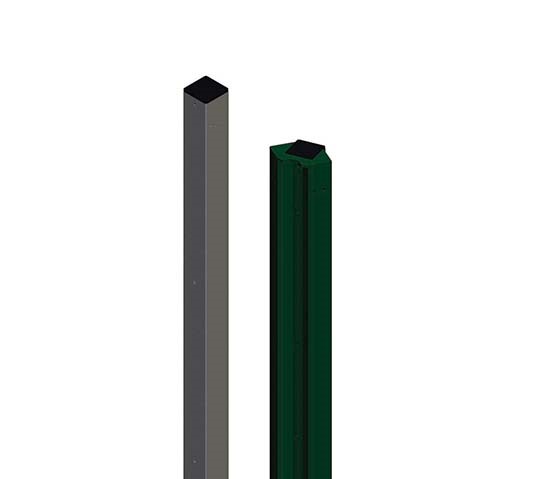 Los pilares diseñados para este cerramiento pueden ser de tres tipos, dependiendo de la altura: de 60×60 mm. para altura hasta 2 m., de 80×60 mm. para alturas de 3 y 4 m. y de 100×60 mm. para altura de 5 m. Todos los pilares están fabricados con tubo galvanizado de 2 mm de espesor, excepto los de 60×60 mm. cuyo espesor es de 1,5 mm., y están sujetos a la norma UNE EN 10305-5.